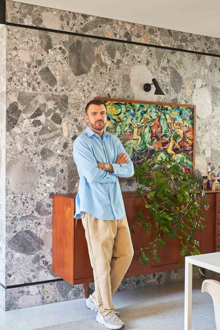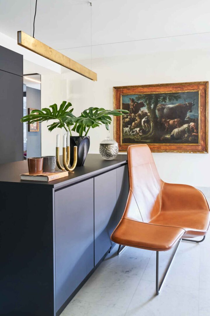 Non stupisce che un grande senso dell’armonia sia palpabile nella sua residenza milanese. Una casa luminosa, con ben ventun finestre, ricca di pezzi di design, con un importante intervento di boiserie e diverse opere d’arte, situata in un quartiere elegante e di classe, accanto al Conservatorio.